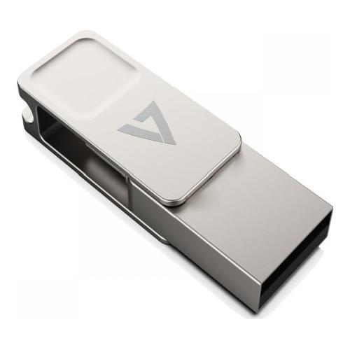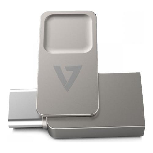 Backup rapido di file e foto importanti con l’unità flash Dual-purpose di V7. USB-C da un lato, USB-A tradizionale dall’altro: racchiusa in un’elegante custodia in metallo, questa unità flash è la compagnia perfetta per l’archiviazione e il backup in movimento.