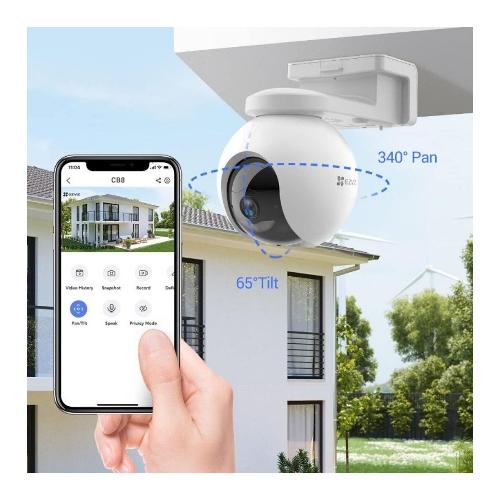 Telecamera di sicurezza motorizzata per esterni estremamente facile da usare con una risoluzione 2K, funziona costantemente fino a 210 giorni con una carica completa della batteria senza cablaggi o costose spese di installazione.