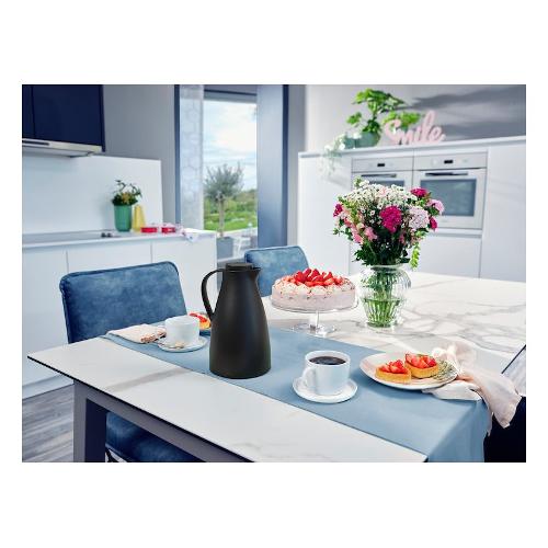 Gli amanti del caffè e gli amanti delle bevande fredde lo apprezzeranno: la caraffa sottovuoto harmonic da 1,0 l. Grazie alla sua borraccia in vetro a doppia parete integrata, mantiene le bevande calde fino a 24 ore e fredde fino a 36 ore. Le sue elevate prestazioni di isolamento sono completate da una comoda capacità di 1 l e un beccuccio curvo per riempire ogni tazza senza gocciolare. Anche il tappo a vite della caraffa sottovuoto è ben congegnato ed è a tenuta ermetica al 100%. La plastica senza bpa della caffettiera è ecologicamente innocua e, grazie all'impugnatura ergonomica, è particolarmente sicura da impugnare. L'altezza del pulsante mostra a colpo d'occhio se la caraffa sottovuoto è aperta o chiusa.