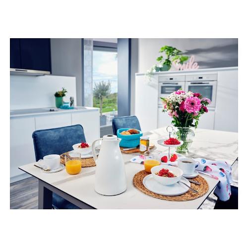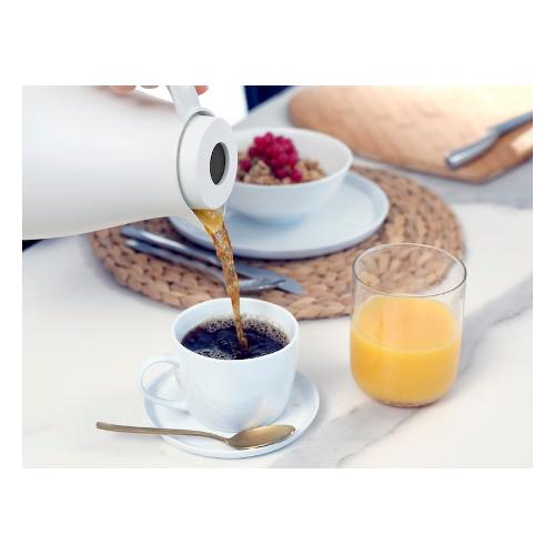 Gli amanti del caffè e gli amanti delle bevande fredde lo apprezzeranno: la caraffa sottovuoto harmonic da 1,0 l. Grazie alla sua borraccia in vetro a doppia parete integrata, mantiene le bevande calde fino a 24 ore e fredde fino a 36 ore. Le sue elevate prestazioni di isolamento sono completate da una comoda capacità di 1 l e un beccuccio curvo per riempire ogni tazza senza gocciolare. Anche il tappo a vite della caraffa sottovuoto è ben congegnato ed è a tenuta ermetica al 100%. La plastica senza bpa della caffettiera è ecologicamente innocua e, grazie all'impugnatura ergonomica, è particolarmente sicura da impugnare. L'altezza del pulsante mostra a colpo d'occhio se la caraffa sottovuoto è aperta o chiusa.