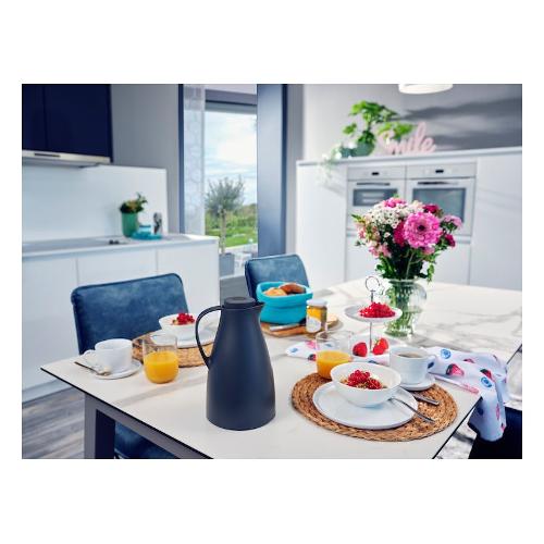 Gli amanti del caffè e gli amanti delle bevande fredde lo apprezzeranno: la caraffa sottovuoto harmonic da 1,0 l. Grazie alla sua borraccia in vetro a doppia parete integrata, mantiene le bevande calde fino a 24 ore e fredde fino a 36 ore. Le sue elevate prestazioni di isolamento sono completate da una comoda capacità di 1 l e un beccuccio curvo per riempire ogni tazza senza gocciolare. Anche il tappo a vite della caraffa sottovuoto è ben congegnato ed è a tenuta ermetica al 100%. La plastica senza bpa della caffettiera è ecologicamente innocua e, grazie all'impugnatura ergonomica, è particolarmente sicura da impugnare. L'altezza del pulsante mostra a colpo d'occhio se la caraffa sottovuoto è aperta o chiusa.