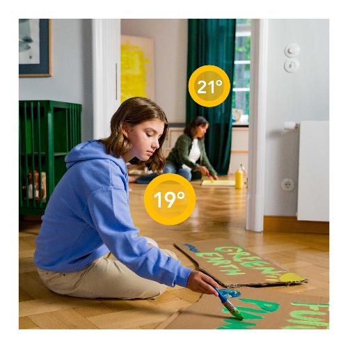 Testa Termostatica Intelligente funziona solo unitamente al tado Kit di Base (confezione con l'Internet Bridge incluso). Più Termostati Intelligenti vengono aggiunti, più la temperatura in casa potrà essere controllata in modo preciso.