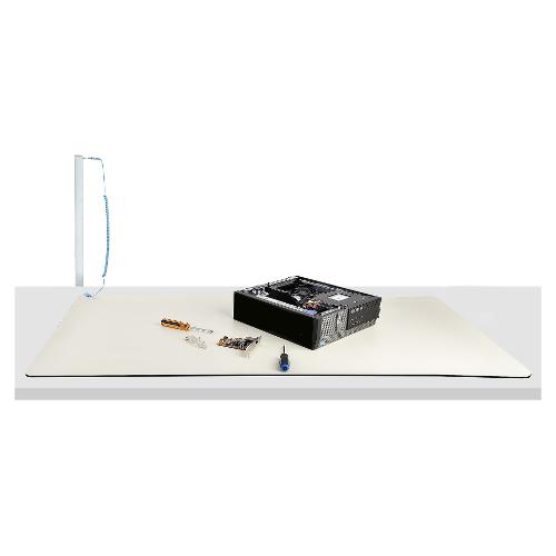 Il tappetino antistatico da tavolo aiuta a proteggere i preziosi dispositivi dai pericoli dell'elettricità statica che può danneggiare permanentemente i componenti e renderli inutilizzabili. Questo tappetino copre un'area di 60 x 120 cm, ideale per impianti di produzione o riparazione in cui sono in uso parti elettroniche. Può anche essere utilizzato nei data center o in altri luoghi che richiedono protezione ESD.