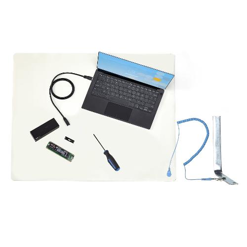 Il tappetino antistatico da tavolo aiuta a proteggere i preziosi dispositivi dai pericoli dell'elettricità statica che può danneggiare permanentemente i componenti e renderli inutilizzabili. Questo tappetino copre un'area di 30 x 46 cm, ideale per impianti di produzione o riparazione in cui sono in uso parti elettroniche. Può anche essere utilizzato nei data center o in altri luoghi che richiedono protezione ESD.