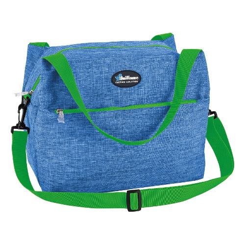 Borsa termica dal design moderno ed essenziale dotata di maniglie e pratica tracolla regolabile e munita di una comoda tasca frontale richiudibile con una zip.