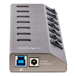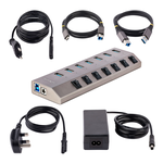 Questo hub USB 3.2 Gen 1 (5Gbps) a 7 porte aggiunge sette porte USB Type-A a un computer, con il vantaggio che ogni porta dispone di un interruttore individuale on/off. L'hub USB è autoalimentato grazie all'alimentatore incluso. Si può collegare ad una porta USB-A o USB-C di un computer portatile o desktop.
