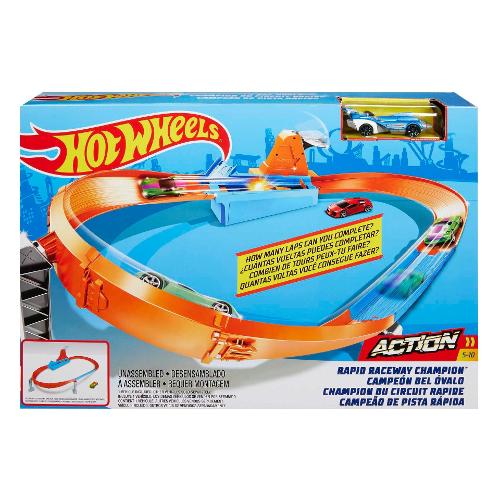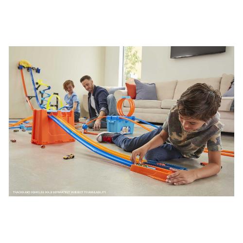 I bambini affrontano i loro amici con l'assortimento di playset Champion Track, per gare dalle performance eccezionali, sgommate e acrobazie! I bambini possono testare le loro abilità in 3 sfide che includono un circuito per le sgommate, sfida di velocità e un'intrepida corsa in salita. Il playset Drift Master Champion™ testa la precisione grazie a un circuito per le sgommate. Per la prima volta, i bambini possono lanciare i loro veicoli lateralmente invece di sfrecciare sgommando appena fuori dal cancello. Abbatti le bandiere regolabili per ricevere punti extra! Il playset Dragstrip Champion™ è una drag race classica con un cancello di partenza fenomenale. Tira la leva verso l'alto e rilasciala per far partire il conto alla rovescia. Quando i cancelli si aprono, inizia la corsa per far sventolare la bandiera del vincitore! Nella sfida Hill Climb Champion™, i bambini potranno testare la loro capacità di raggiungere la vetta. I bambini possono caricare la loro macchinina e premere il punto di lancio per ottenere abbastanza forza di propulsione da riuscire a superare il ripido pendio e atterrare sulla vetta! Tutto ciò di cui i bambini hanno bisogno per le corse è incluso in questa confezione: pista arancione, curve a U, corsa testa a testa e punti di lancio, più un veicolo Hot Wheels®!Ogni playset si collega ad altri playset Hot Wheels® (in vendita separatamente) per costruire piste sempre più epiche.