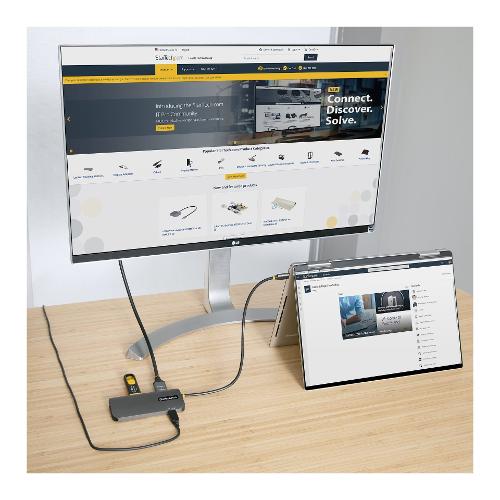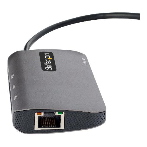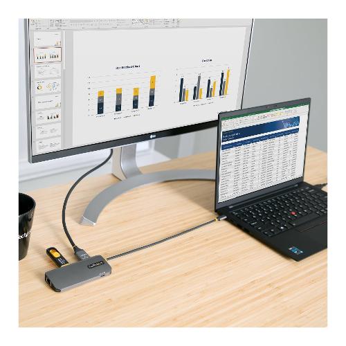 Questo adattatore multiporta USB-C con modalità DP 1.4 Alt supporta 4K 60Hz HDMI (HDR) e trasforma MacBook, Dell XPS o altri laptop o tablet USB-C in una workstation, ovunque ci si trovi.