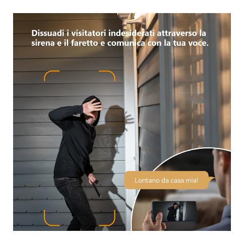 Versa offre un monitoraggio live da 2 MP con un obiettivo ad alte prestazioni F1.6 da 2,8 mm, supporta quattro modalità di visione notturna per nitidezza di immagini come di giorno anche al buio pesto. Con un case certificato IP65, la telecamera può essere utilizzata all'aperto con diverse condizioni meteorologiche. Con una sirena di sicurezza da 120 dB, Versa tiene attivamente lontani i visitatori indesiderati. Con la staffa di montaggio magnetica puoi metterla ovunque tu voglia.