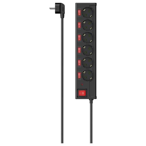 Presa multipla per il collegamento di un massimo di sei apparecchi elettrici commutabili individualmente. Lunghezza cavo 1,4m.