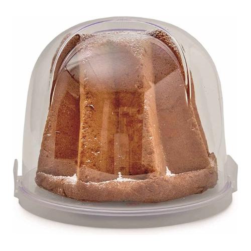 Consente di proteggere e servire i classici dolci delle feste. Le 2 chiusure di sicurezza integrate al vassoio lo rendono un prodotto pratico da maneggiare e spostare. Il design elegante e il decoro sul vassoio lo rendono bello per il servizio in tavola. Grazie all’eleganza e alla trasparenza, effetto cristallo, della campana, lo puoi usare anche per servire in tavola nelle occasioni speciali. La campana è dotata di presa integrata, per offrirti una maggiore praticità.Utilizzabile In frigorifero e freezer, per conservare più a lungo tutti i tipi di dolci.