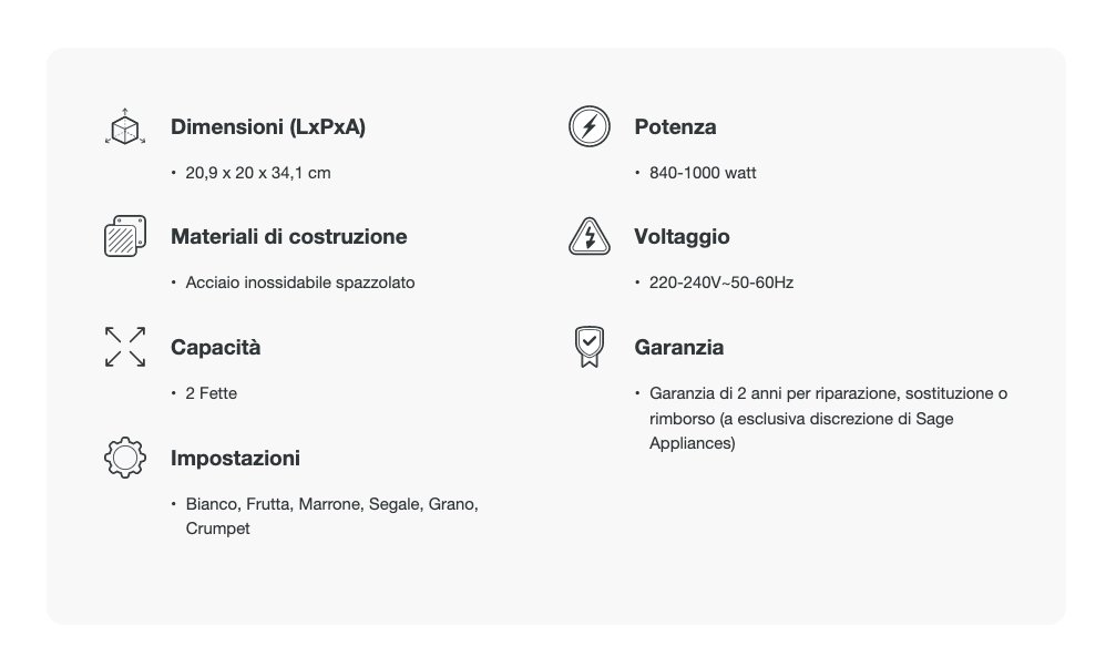 Toast Select Luxe con 6 impostazioni di pane: bianco, marrone, cereali, frutta, segale e crumpet regola il tempo di tostatura per ogni tipo di pane.