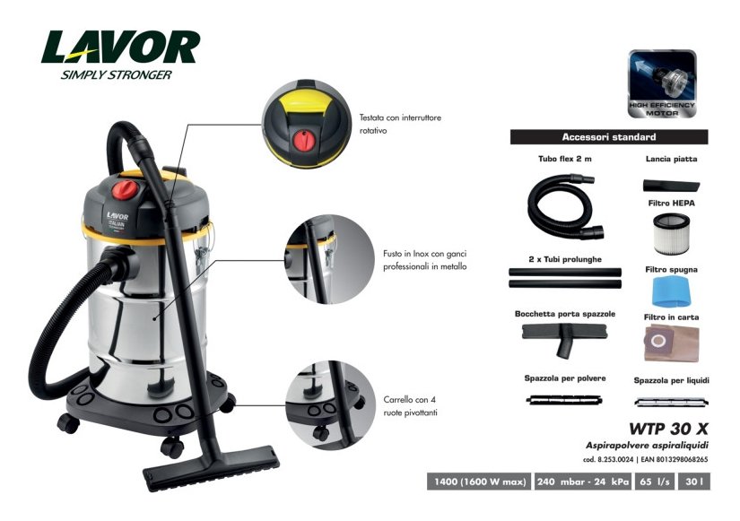 Bidone aspiratutto 1600W (30Lt) WTP 30 X 40028 00024