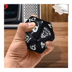 La sfera nera da 6,5 cm di larghezza e 6,5 cm di altezza ha la forma di dadi a 20 lati.