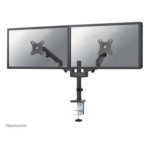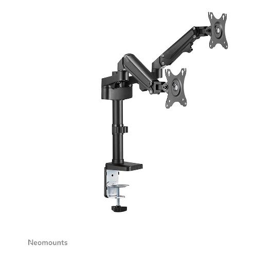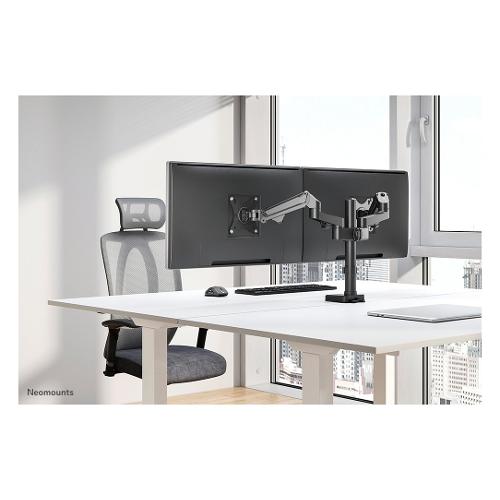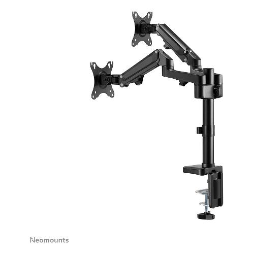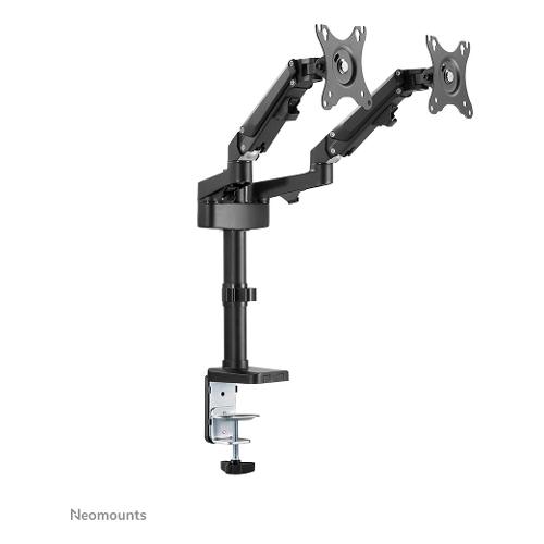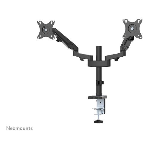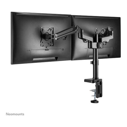 Il Neomounts by Newstar DS70-750BL2 è un supporto da scrivania full motion per due schermi piatti fino a 27" con peso massimo di 7 kg per schermo. Grazie alla versatile inclinazione (90°), rotazione (360°) e oscillazione (180°), il supporto da tavolo può essere regolato a qualsiasi angolo di visione desiderato e può sfruttare appieno le possibilità degli schermi. Inoltre, il supporto ha la regolazione dell'altezza con sospensione a gas (7,3-48,1 cm) e la regolazione della profondità (0-37,8 cm) per ottenere la posizione di lavoro perfetta.