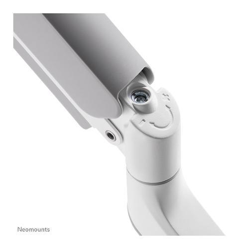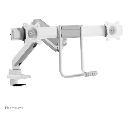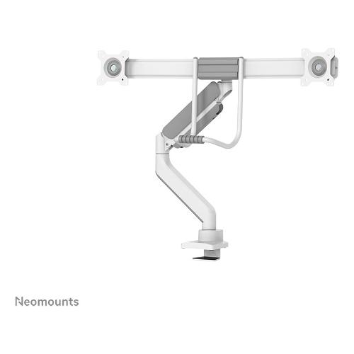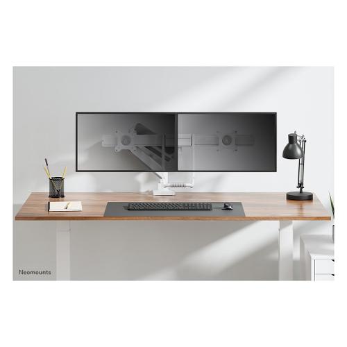 Il Neomounts by Newstar DS75-450WH2 è un supporto da scrivania full motion per due schermi piatti fino a 32" con una capacità massima di peso di 8 kg per schermo. La versatile tecnologia di inclinazione (20°), rotazione (360°) ed oscillazione (20°) consente di cambiare l'angolo di visione per sfruttare appieno le capacità degli schermi. Inoltre, il supporto è dotato di molla a gas per la regolazione dell'altezza (27,7-56 cm) e della profondità (0-50,5 cm), per creare la posizione di lavoro perfetta. Il DS75-450WH2 è dotato di un ingegnoso meccanismo di arresto a 180°, che consente di regolare in modo sicuro il supporto anche quando è posizionato vicino a una parete o a un pannello di separazione, senza entrare in contatto con la parete. L'intelligente sistema di gestione dei cavi assicura un instradamento ordinato degli stessi.