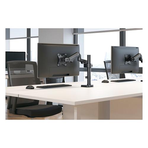 Il Neomounts by Newstar DS70-750BL1 è un supporto da scrivania full motion per uno schermo piatto fino a 27" con peso massimo di 7 kg. Grazie alla versatile inclinazione (90°), rotazione (360°) e oscillazione (180°), il supporto da tavolo può essere regolato a qualsiasi angolo di visione desiderato per sfruttare appieno la visione del tuo schermo. Inoltre, il supporto ha la regolazione dell'altezza con sospensione a gas (7,3-48,1 cm) e la regolazione della profondità (0-37,8 cm) per ottenere la posizione di lavoro perfetta.
