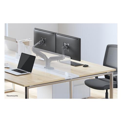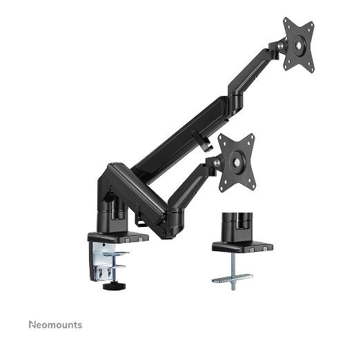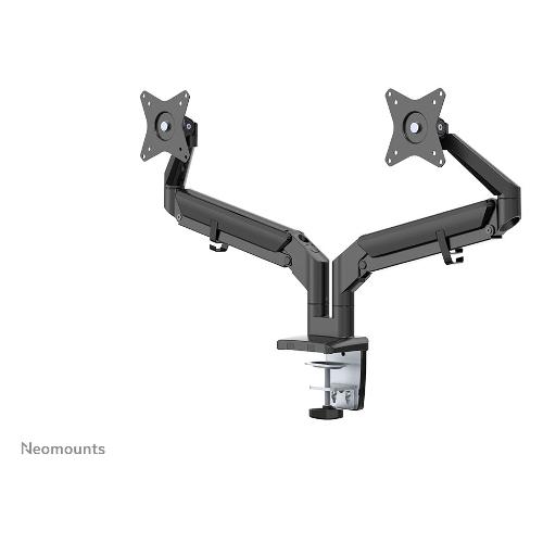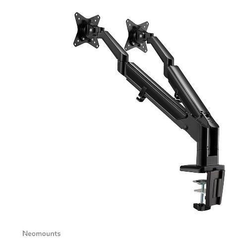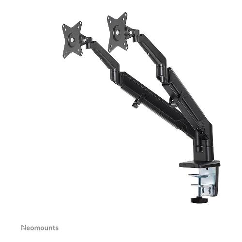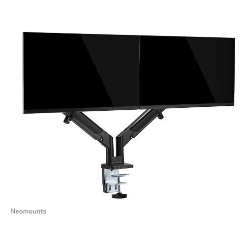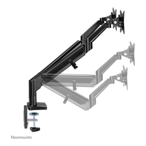 Il Neomounts by Newstar DS70-810BL2 è un supporto da scrivania full motion per due schermi piatti fino a 32" con peso massimo di 9 kg per schermo. Grazie alla versatile inclinazione (90°), rotazione (360°) e oscillazione (180°), il supporto da tavolo può essere regolato a qualsiasi angolo di visione desiderato e può sfruttare appieno le possibilità degli schermi. Inoltre, il supporto ha la regolazione dell'altezza con sospensione a gas (26,5-55 cm) e la regolazione della profondità (0-49 cm) per ottenere la posizione di lavoro perfetta. Inoltre, il DS70-810BL2 è dotato di un meccanismo di arresto a 180°, che consente di regolare in sicurezza il supporto anche quando è posizionato vicino a una parete o a un pannello di separazione senza entrare in contatto con la parete. Le clip intelligenti per la gestione dei cavi garantiscono una guida chiara dei cavi.