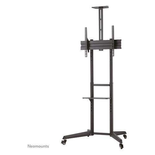 Il Neomounts by Newstar FL50-550BL1 è un supporto da pavimento mobile per schermi piatti fino a 70" con una capacità di carico massima di 50 kg. Il supporto da pavimento ha quattro impostazioni di altezza e un'opzione di inclinazione (17°) per creare l'angolo di visione ottimale. Inoltre, il modello FL50-550BL1 include un ripiano per un lettore multimediale (ad esempio) ed un altro ripiano per telecamera con regolazione in altezza, ogni ripiano ha una capacità di peso max di 5 kg. Il carrello è dotato di quattro ruote solide - due con freno - in modo che il supporto possa essere utilizzato ovunque. Un intelligente sistema di gestione dei cavi nasconde e instrada i cavi dal supporto allo schermo piatto.