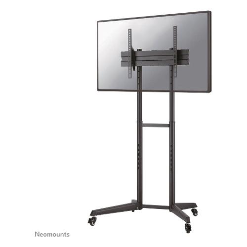 Il Neomounts by Newstar FL50-540BL1 è un supporto da pavimento mobile per schermi piatti fino a 70" con una capacità di carico massima di 50 kg. Il supporto da pavimento ha quattro impostazioni di altezza e un'opzione di inclinazione (17°) per creare l'angolo di visione ottimale. Il carrello è dotato di quattro ruote solide - due con freno - in modo che il supporto a pavimento possa essere utilizzato ovunque. Un intelligente sistema di gestione dei cavi nasconde e instrada i cavi dal supporto allo schermo piatto.