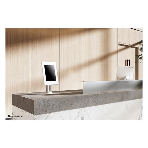 Il Neomounts by Newstar DS15-640WH1 è un supporto per tablet da tavolo che può ruotare di 90° in modo da poter passare dall'orientamento verticale a quello orizzontale. Il supporto può inclinarsi fino a 75° per una comoda posizione di visualizzazione. Il design intelligente include sei diversi inserti per tablet, rendendo il supporto per tablet adatto alla maggior parte dei tablet da 9,7-11", incluso iPad Pro gen 1-5, iPad Air 1-4, iPad 5-9, Samsung Galaxy Tab A, Tab A7 e Tab S6. Il supporto per tablet è dotato di un lucchetto antifurto e di una base avvitabile per una maggiore sicurezza. I cuscinetti antiscivolo nella custodia proteggono il tablet da possibili graffi e la struttura in acciaio garantisce un posizionamento sicuro e stabile. Il sistema di gestione dei cavi consente di guidare i cavi attraverso l'involucro.
