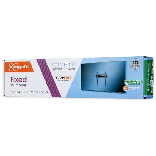 Il supporto a parete per TV della serie COMFORT Fixed è la soluzione ideale se vuoi montare la tua TV in modo sicuro ed elegante alla parete. Il supporto a parete per TV è adatto a TV da 19 a 50 pollici con peso fino a 30 kg. Ci sono solo 2,2 cm tra la parete e la TV.