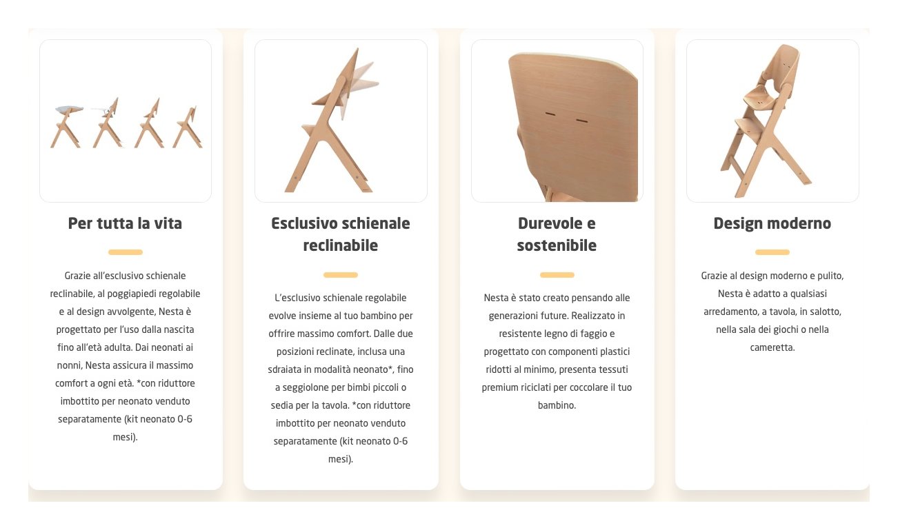Nesta è un elegante seggiolone in legno che offre massimo comfort dalla nascita fino all'età adulta. Grazie al suo esclusivo design è facilmente regolabile per assicurare una posizione sempre comoda a tavola, a qualunque età. Pensato per durare, nesta è realizzato in resistente legno di faggio e tessuti premium riciclati. Il suo design moderno, senza tempo, consente di usarlo per una vita intera.