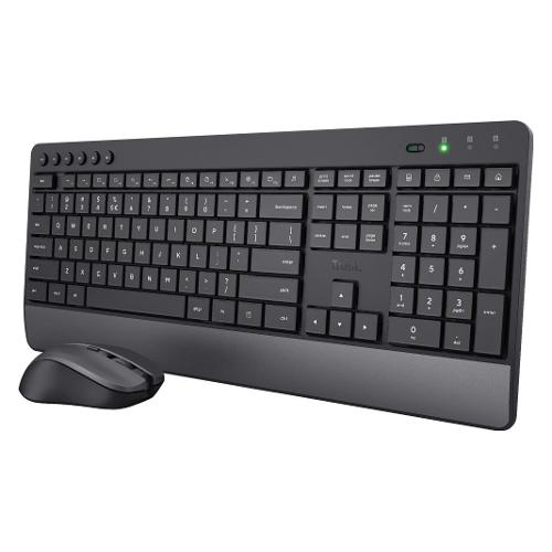 Tastiera e mouse wireless confortevoli con tasti e pulsanti silenziosi, prodotti con materiali riciclati