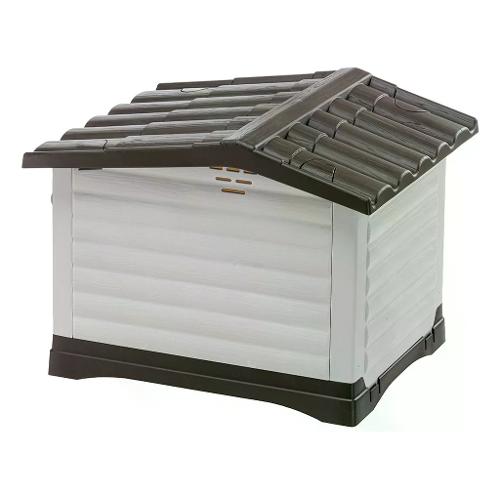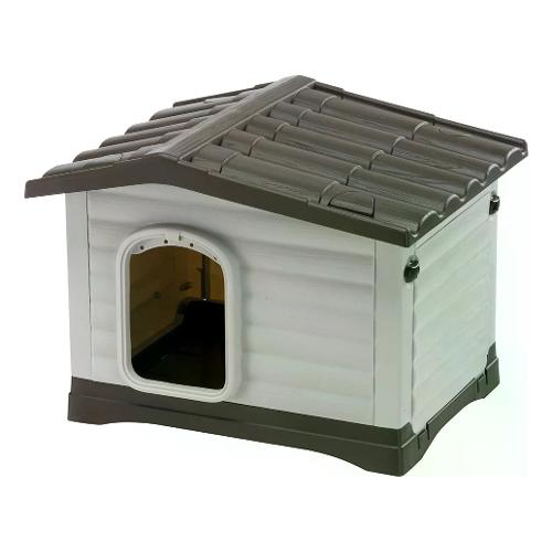 Dogvilla è una cuccia da esterno per cani dotata di sistema di apertura della parete laterale (brevettato). Il pannello apribile si può montare a scelta su fianco destro o sinistro; una volta aperto diventa una pratica pedana che si appoggia sul terreno e consente al vostro cane di avere tanto spazio in più per sè. Ideale per qualsiasi stagione dell'anno, chiusa in inverno o aperta in estate, la cuccia dogvilla è dotata di sistema di ventilazione che assicura un'ottima aerazione interna evitando il formarsi di umidità garantendo così un ambiente sempre asciutto; la particolare costruzione del fondo presenta inoltre apposite fessure per consentire il defluire dell'acqua verso l'esterno. Il montaggio è estremamente semplice e non richiede strumenti particolari. Questo la rende trasportabile e utilizzabile anche in vacanza. La cuccia è inoltre facile da pulire in quanto dotata di tetto removibile.
