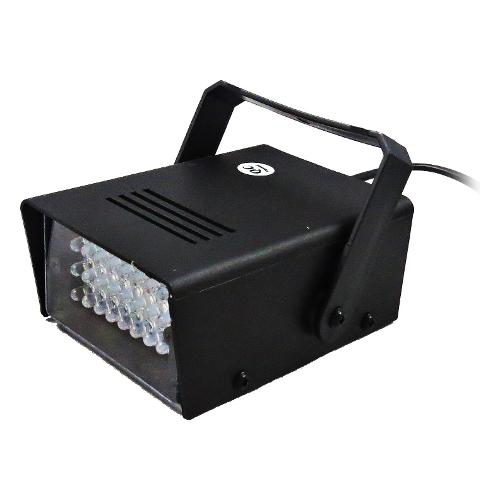 Un piccolo faro stroboscopico che sfrutta 24 leds bianchi per una potenza complessiva di 20W. La velocità del lampeggio è regolabile ed è dotato di una pratica staffa di fissaggio. Ideato per utilizzi amatoriali o per applicazioni sceniche più complesse. Il consumo risulta irrisorio e l’affidabilità altissima: la vita media dei led è di 50.000 ore.