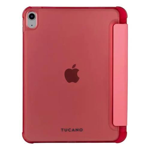 Custodia satinata con scocca posteriore trasparente stampata a doppia iniezione. La copertina anteriore si trasforma in un comodo supporto. Supporto interno per Apple Pencil e Tucano Pencil.