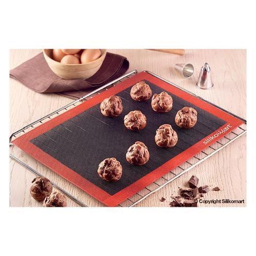 Appeti in silicone microforati con anima in fibra di vetro ideali per la cottura di éclair, biscotti, bignè, petits-fours, pane e pizza. Grazie ai fori presenti il calore viene trasmesso in modo uniforme su tutta la superficie dei tappetini garantendo una cottura ottimale sia sulla parte superiore che quella inferiore delle preparazioni. I tappeti microforati possono essere utilizzati anche come supporto per la surgelazione, sono anti scivolo e antiaderenti.;