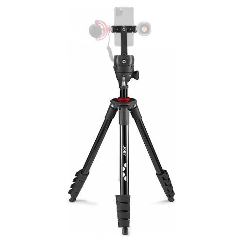 Crea contenuti fotografici o video dinamici con questo kit treppiede pensato per l'azione con attacco per smartphone incluso.