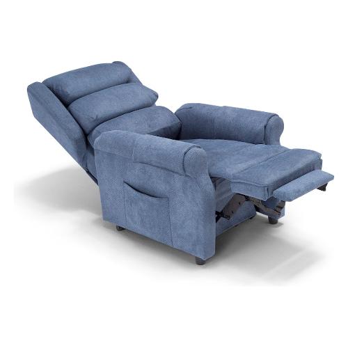 Grandi superfici morbide e confortevoli, linee classiche, ampia spalliera e braccioli accoglienti, tutti elementi che fanno di questa poltrona il top delle soluzioni relax. Meccanica Lift-Relax 2 Motori. Posizione di totale estensione della poltrona per raggiungere la funzione letto. Posizione che grazie all’apertura della sola pediera permette una comoda visione della tv. Grazie alla funzione LIFT, è possibile il sollevamento della seduta. Questa posizione aiuta l’utilizzatore in caso di difficoltà motoria