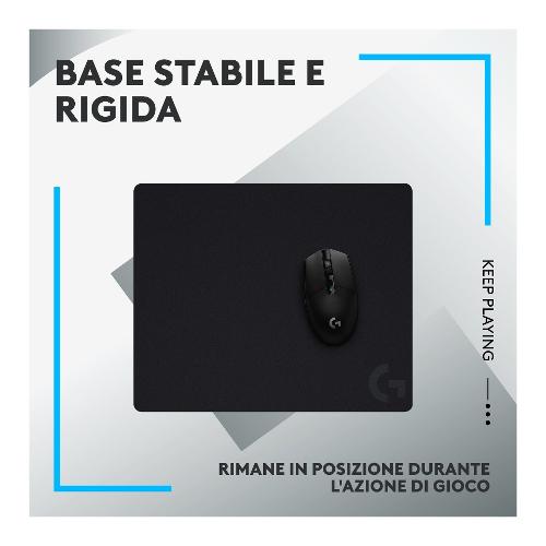Grandi dimensioni, 400 x 460 mm, per più spazio e movimento del mouse. La suola in gomma rimane in posizione per un gioco intenso. La struttura della superficie è ottimizzata per i mouse Logitech G e per le massime prestazioni di gioco.