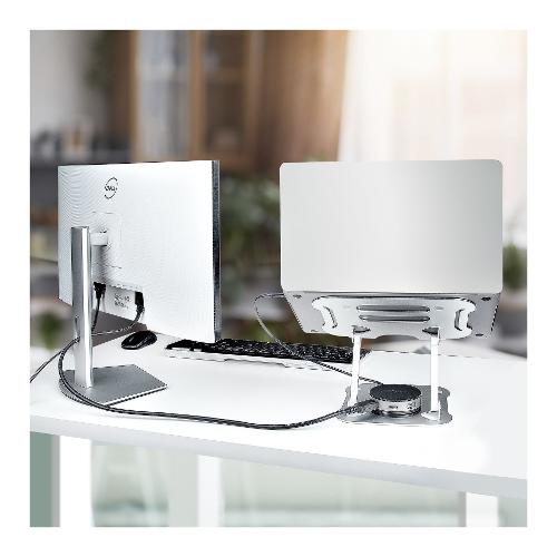 Il supporto per PC Portatile da scrivania consente di regolare l'altezza e l'inclinazione del laptop fino all'altezza degli occhi per un maggiore comfort ergonomico e produttività. Lo stand per laptop supporta qualsiasi computer portatile con una capacità massima di 10 kg. Il suo design leggero e pieghevole facilita il trasporto e consente di riporlo rapidamente anche nella borsa del notebook.