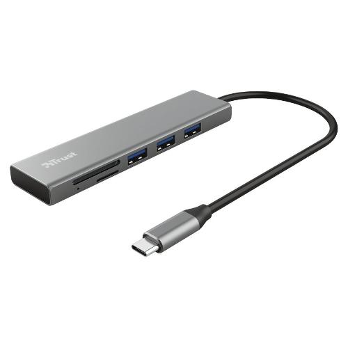 Compatto hub USB a 3 porte in alluminio con lettore di schede (micro) SD e connessione USB-C