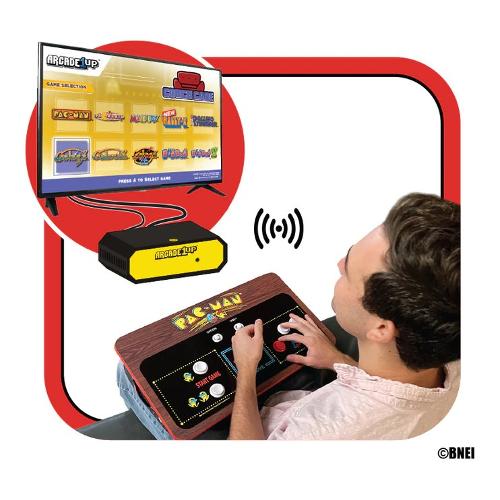 Siediti, mettiti comodo e Play Again con Arcade1Up Couchcades! Collega facilmente la Micro Game Console alla TV tramite la porta HDMI, il deck di controllo wireless presenta controlli arcade reali nella parte superiore e un fondo morbido a sacco. Dieci giochi, divertimento di gioco retrò illimitato!