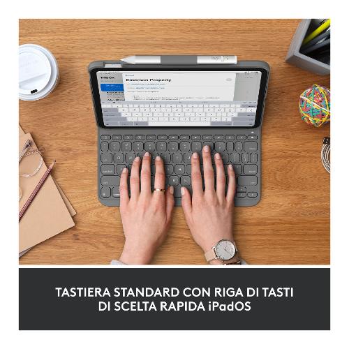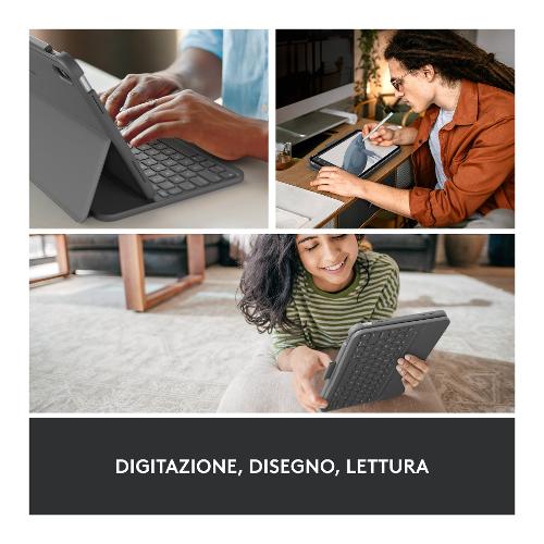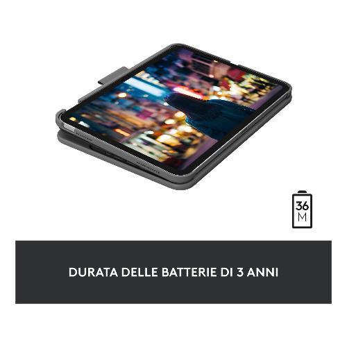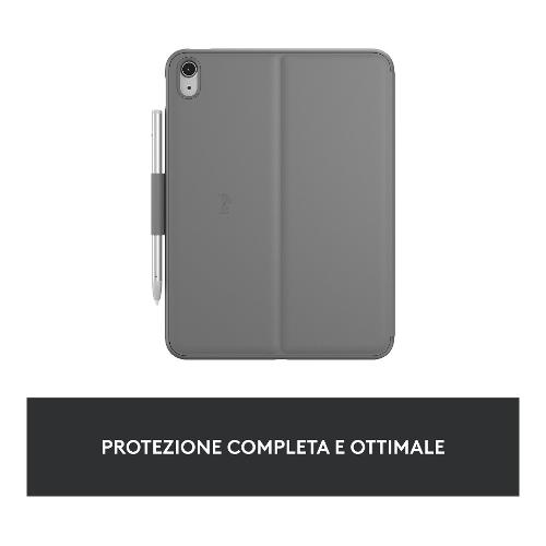 Digita comodamente sul tuo iPad ovunque ti trovi. La custodia integrata è facile da usare e da trasportare e protegge il tuo iPad da urti e graffi.