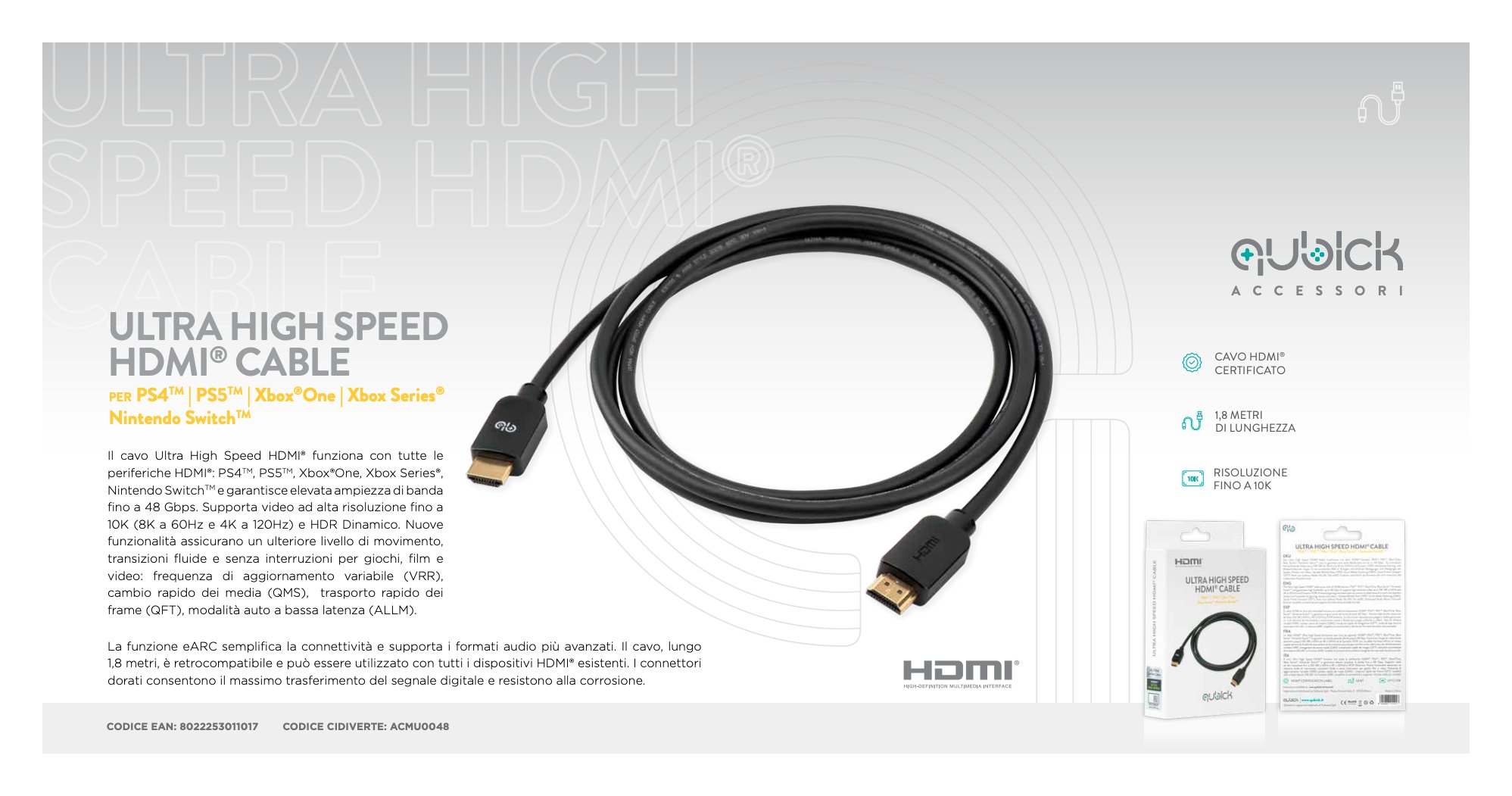 Cavo HDMI 8K Black 1,8m ACMU0048