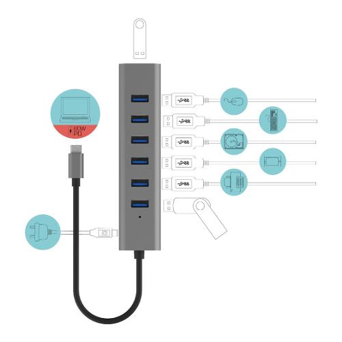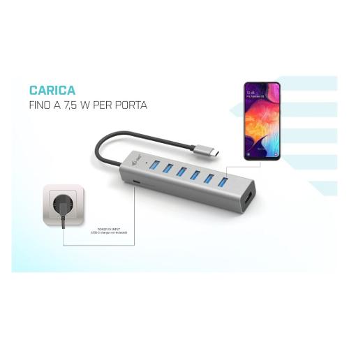 Hub USB 3.0 Grigio 7 porte C31HUBMETAL703