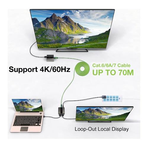 Permette di estendere facilmente il segnale HDMI 4K usando un cavo di rete Cat. 6/6A/7 per ampliare le distanze di trasmissione.