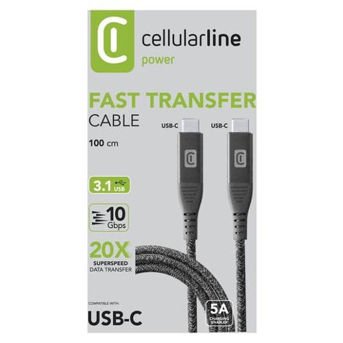 Il nuovo FAST TRANSFER CABLE Cellularline è un cavo con tecnologia USB 3.1 con cui è possibile trasferire musica, video, immagini e tanti altri dati alla velocità di 10Gbps, 20 volte superiore rispetto ad un cavo standard.Questo cavo è studiato per ottenere le migliori performance: connettore allungato per garantire l’alta velocità di trasferimento, cavo rivestito di tessuto per una maggiore piacevolezza al tatto e lunghezza di100cm perfetta per lo scambio di dati tra device. Inoltre il FAST TRANSFER CABLE con compatibilità usb-c to usb-c consente il passaggio di corrente fino a 5A, per una carica Superfast fino a 100W.
