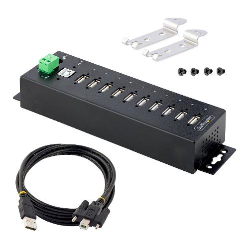 Questo hub industriale USB 2.0 a 10 porte, conforme alla normativa TAA, offre scalabilità e protezione in ambienti industriali difficili, fornendo un numero elevato di porte USB con protezione ESD di livello 4. La struttura resistente dell'alloggiamento in metallo è ideale per le applicazioni industriali.