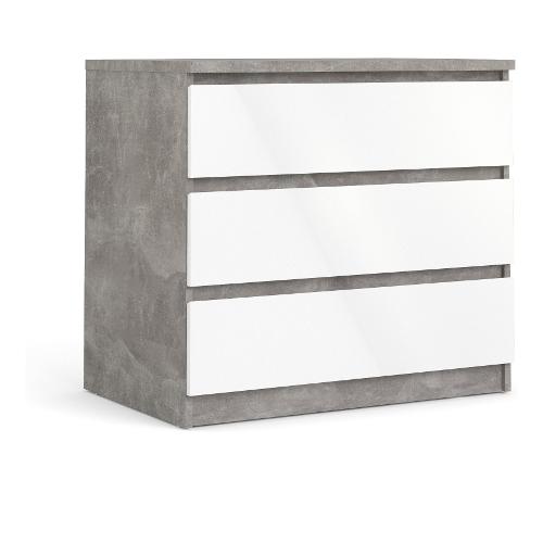 NAIA Cassettiera 3 Cassetti Ossido cemento e Bianco lucido (75cm) Mobile KIT