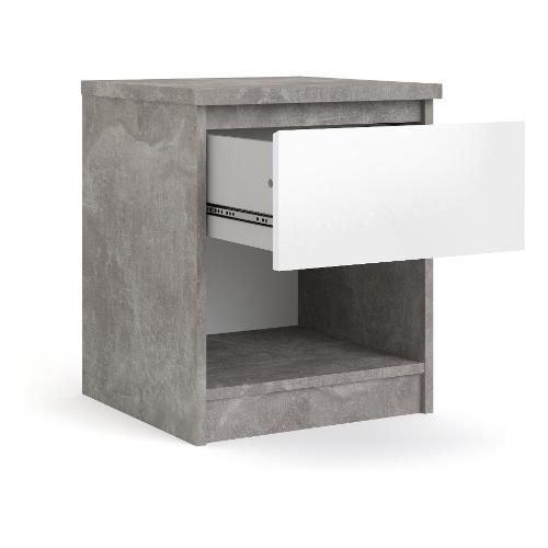 NAIA Comodino 1 Cassetto, 1 Vano a giorno Ossido cemento e Bianco lucido Mobile KIT (40,4x40x49,5cm)