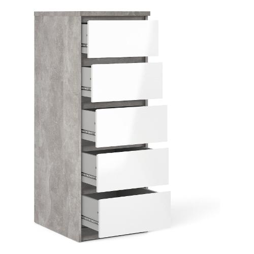NAIA Cassettiera 5 Cassetti Ossido cemento e Bianco lucido (40cm) Mobile KIT
