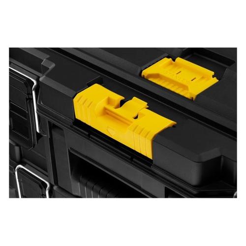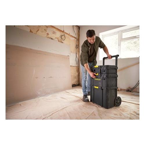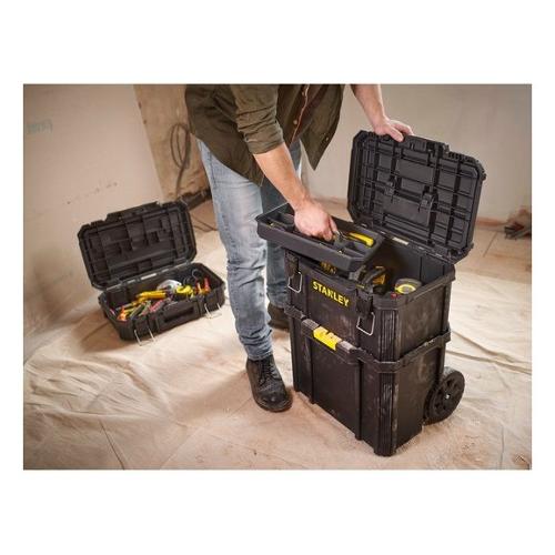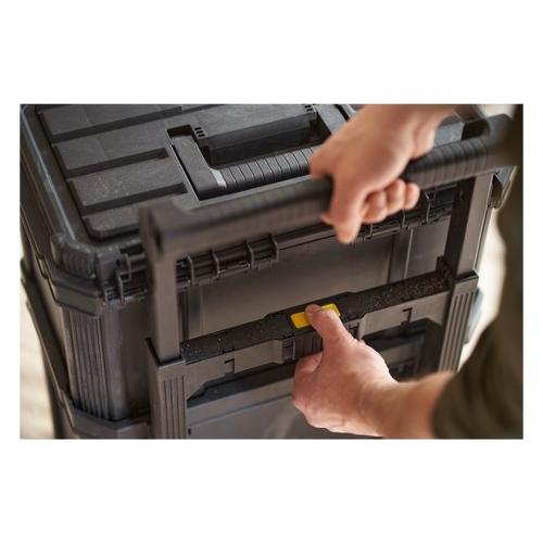 Set mobile a 3 elementi composto da: cassetta portautensili bassa + cassetta portautensili gran volume con vaschetta estraibile + vasca aperta gran volume. Connessione e disconnessione facilitata dei moduli grazie alle cerniere di aggancio frontali auto-lock