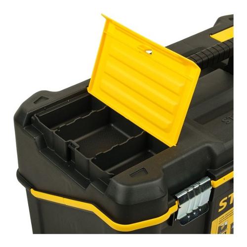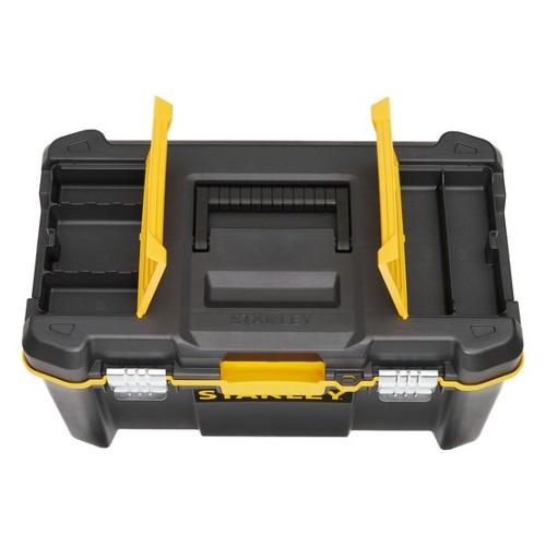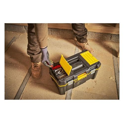 Include due organizer nel coperchio per l’alloggiamento della minuteria. La vaschetta superiore può alloggiare due organizer Essential da 10 scomparti. Coperchio fornito di asola per chiusura con lucchetto.
