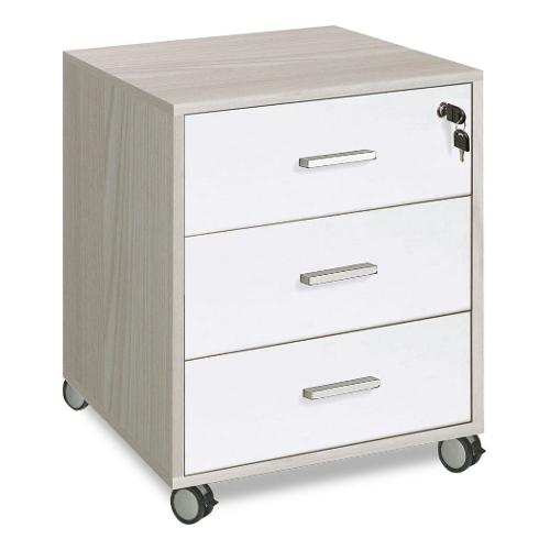 QUADRANTE 733 Cassettiera ufficio 3 Cassetti Olmo chiaro e Bianco fiammato (50cm)